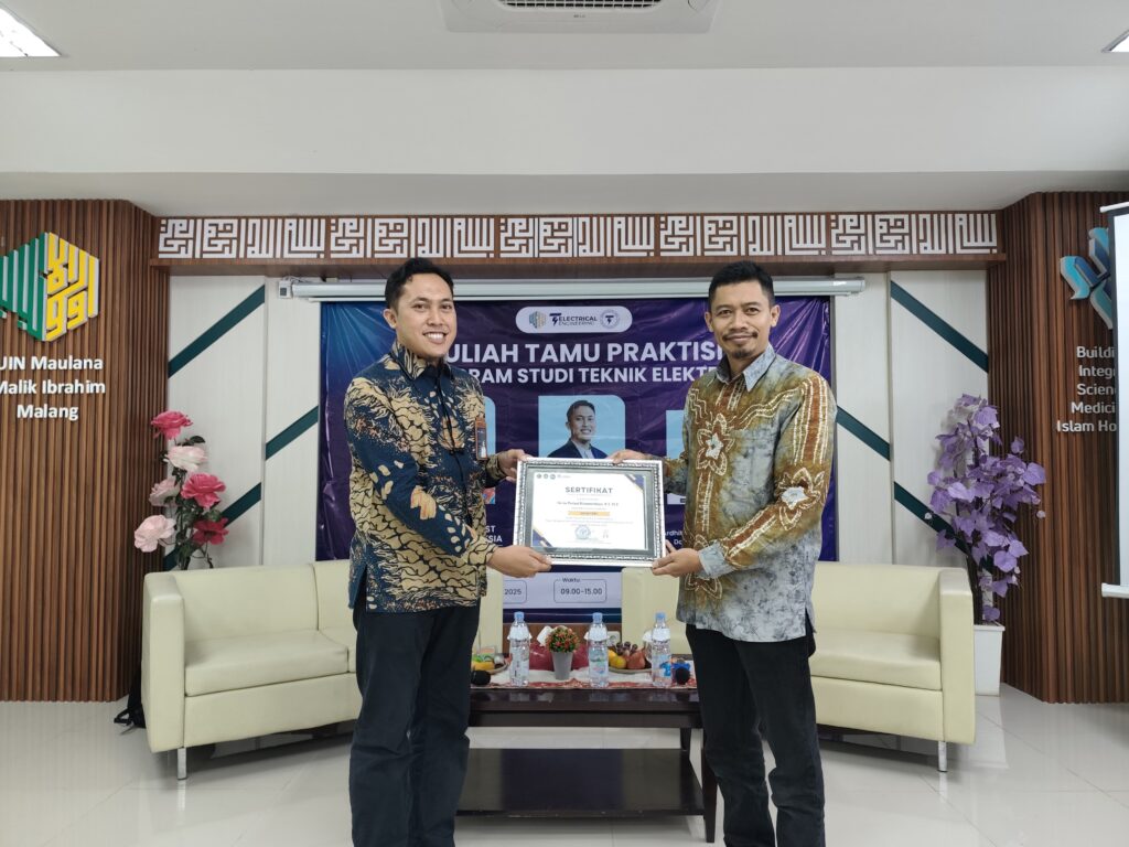 Dalam rangka memperkuat keterkaitan antara dunia akademik dan dunia industri, Program Studi Teknik Elektro Fakultas Sains dan Teknologi UIN Maulana Malik Ibrahim Malang menyelenggarakan kegiatan Kuliah Tamu Praktisi pada Jumat, 10 Oktober 2025, bertempat di Auditorium FKIK Lantai 3.